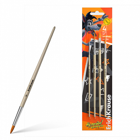 Кисти для акварели и гуаши ErichKrause Ну, Погоди! Каникулы, синтетика, 4 штуки (в блистере) |