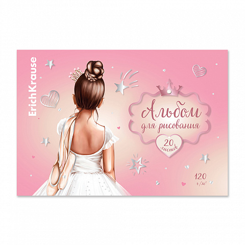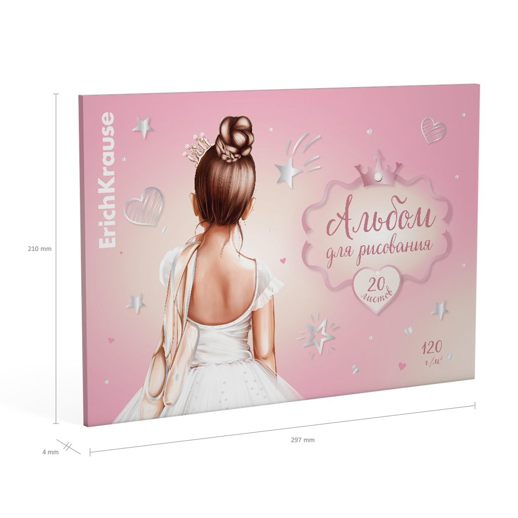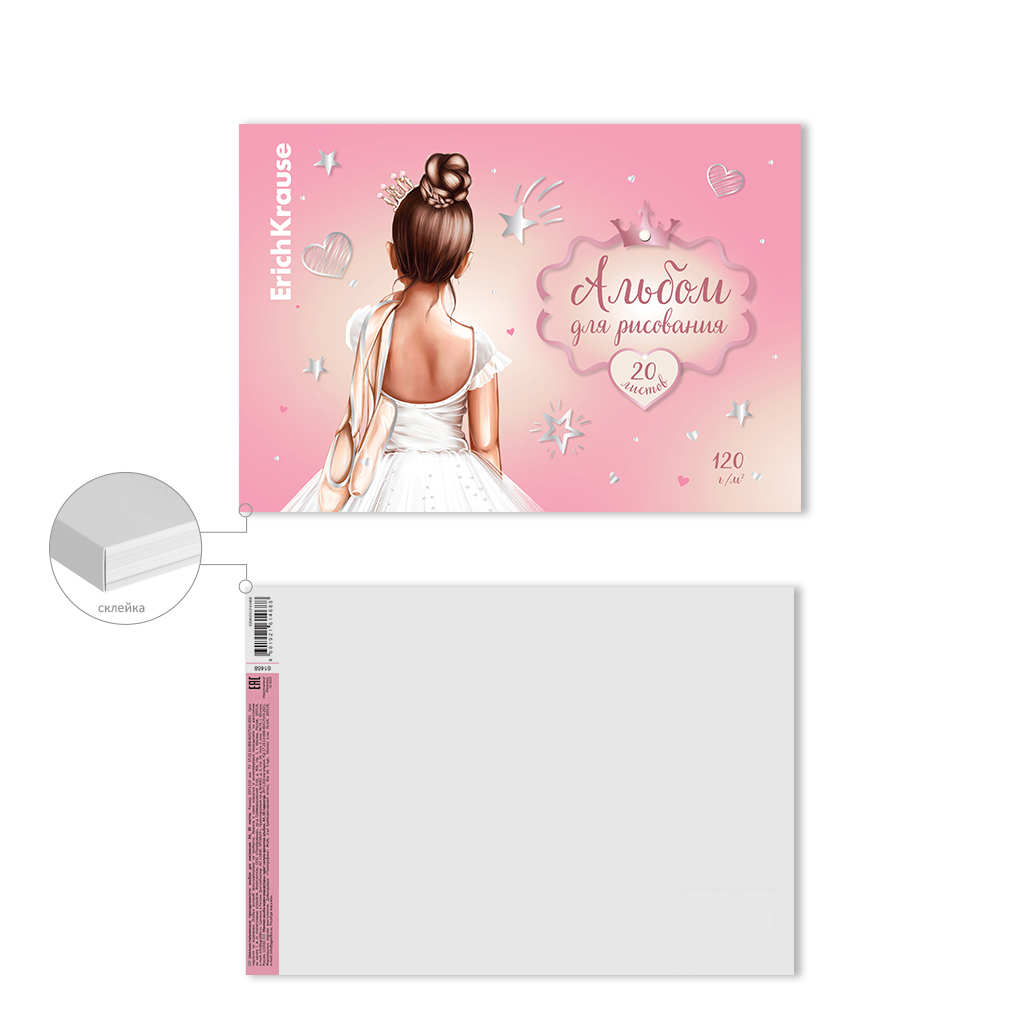 Альбом для рисования формата А4 (210х297 мм). Обложка из высококачественного мелованного картона плотностью 170 г/м2. Жесткая подложка 360 г/м2. В блоке 20 листов. Бумага плотностью 120 г/м2. Белизна бумаги - 100%. Тип скрепления - клей. Альбомы упакованы в… |
