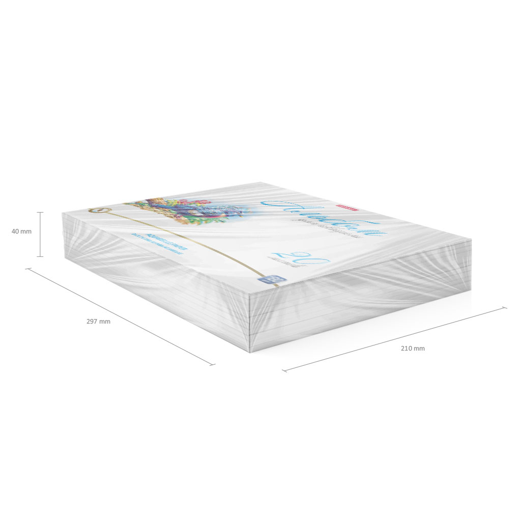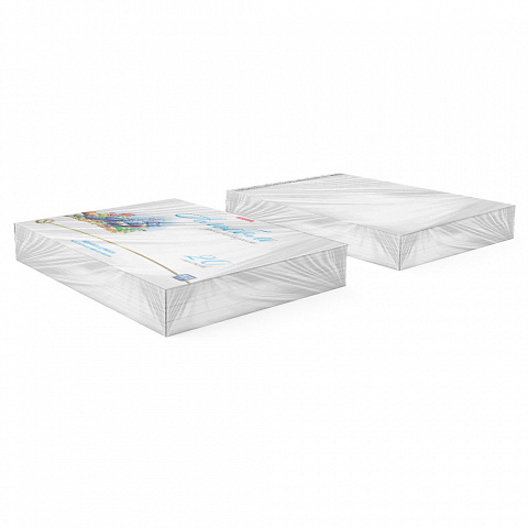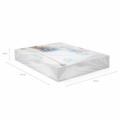 Альбом для рисования формата А4 (210х297 мм). Обложка из высококачественного мелованного картона плотностью 170 г/м2. Жесткая подложка 360 г/м2. В блоке 20 листов бумаги акварельной плотностью 180 г/м2. Специальный рыхлый верхний слой быстро впитывает воду, не позволяя краске растекаться. Белизна бумаги - 100%. Тип скрепления - клей. Альбомы упакованы в термоусадочную пленку по 5 штук. |