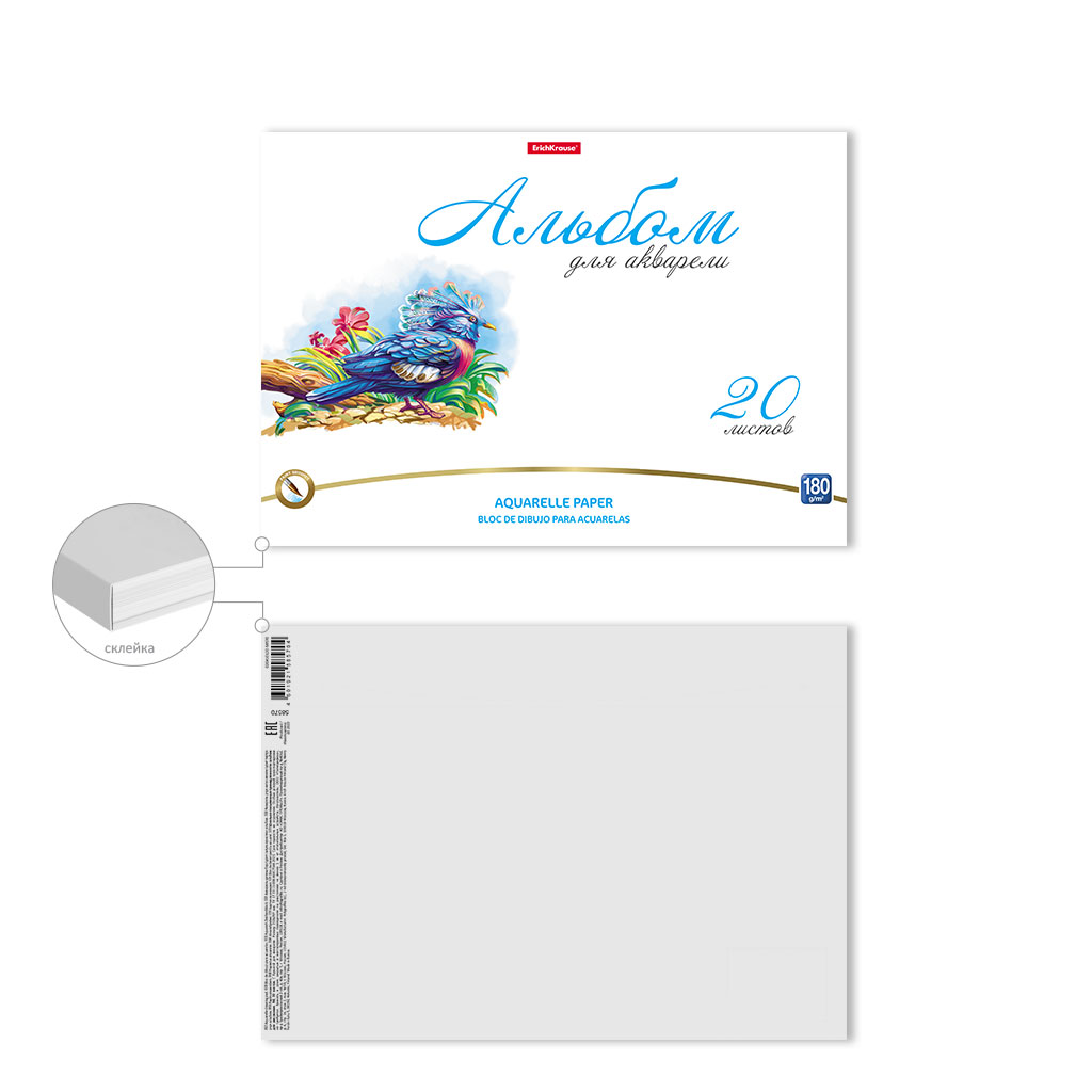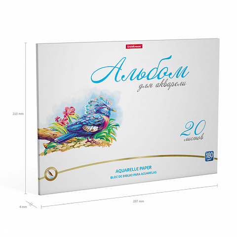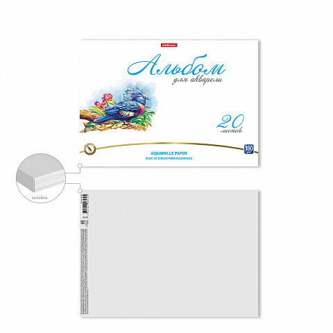 Альбом для рисования с бумагой для акварели на клею ErichKrause Birds, А4, 20 листов