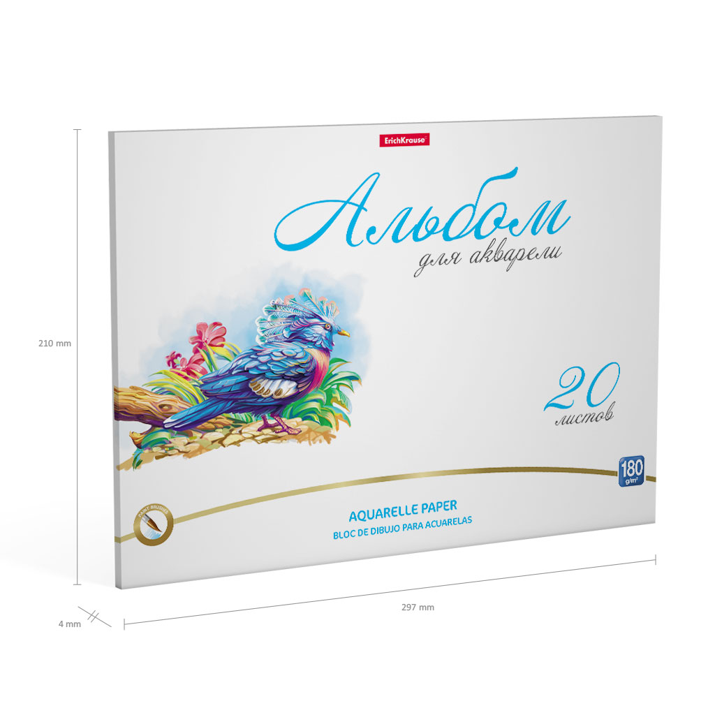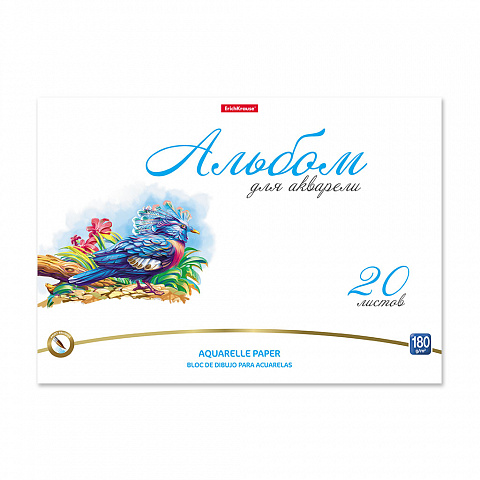Альбом для рисования с бумагой для акварели на клею ErichKrause Birds, А4, 20 листов |