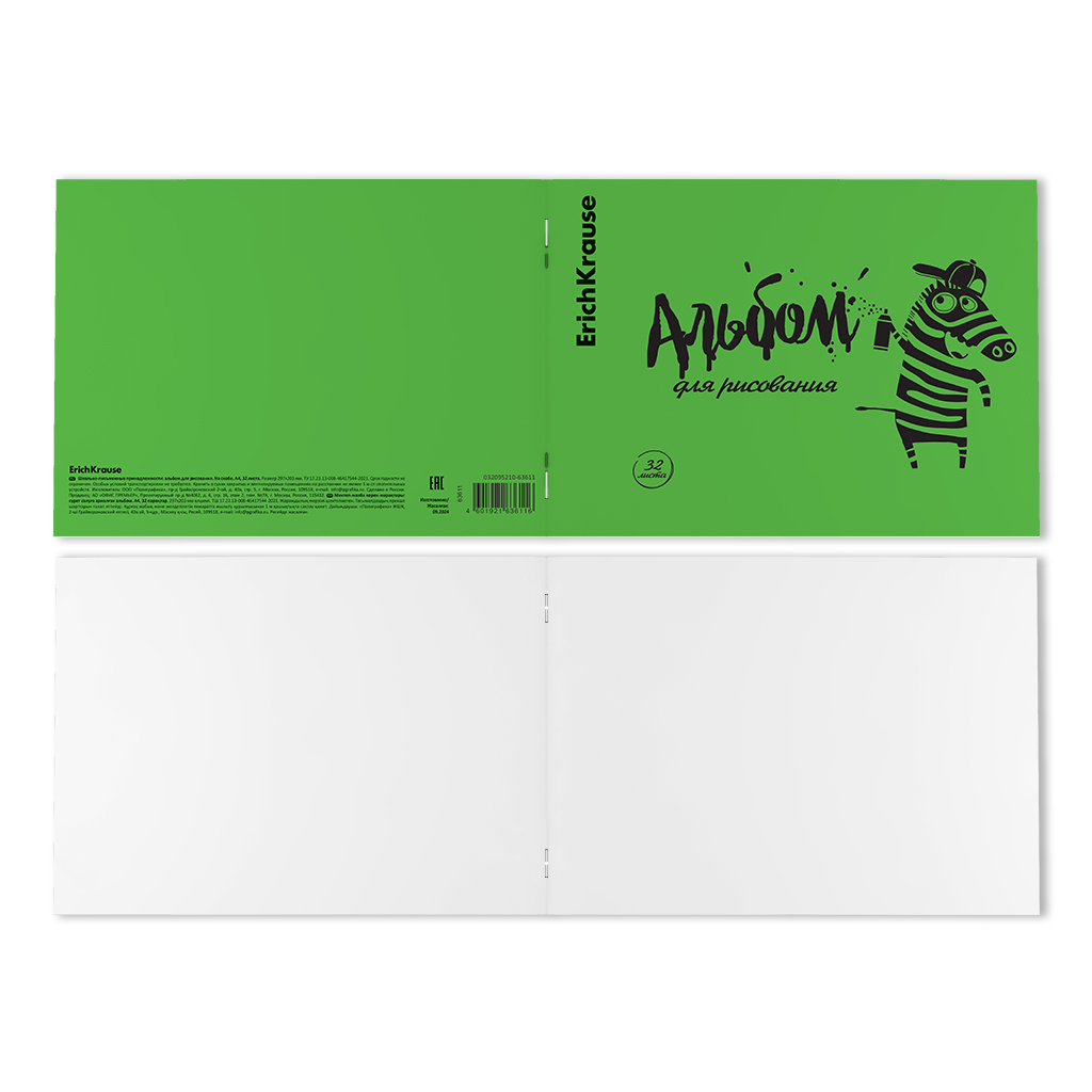 Альбом для рисования на скобе c пластиковой обложкой ErichKrause Zebra, Neon зеленый, А4, 32 листа |