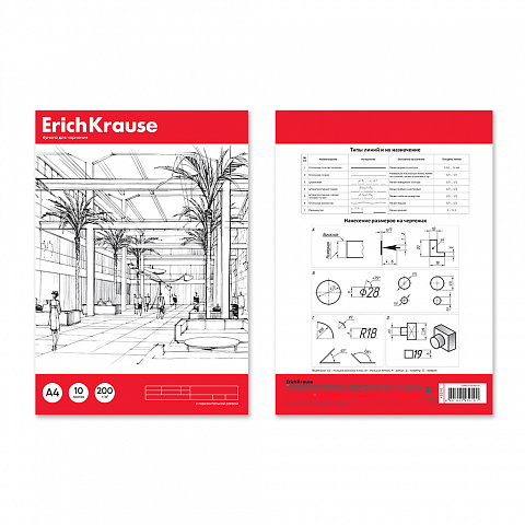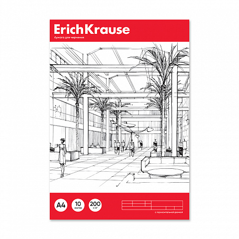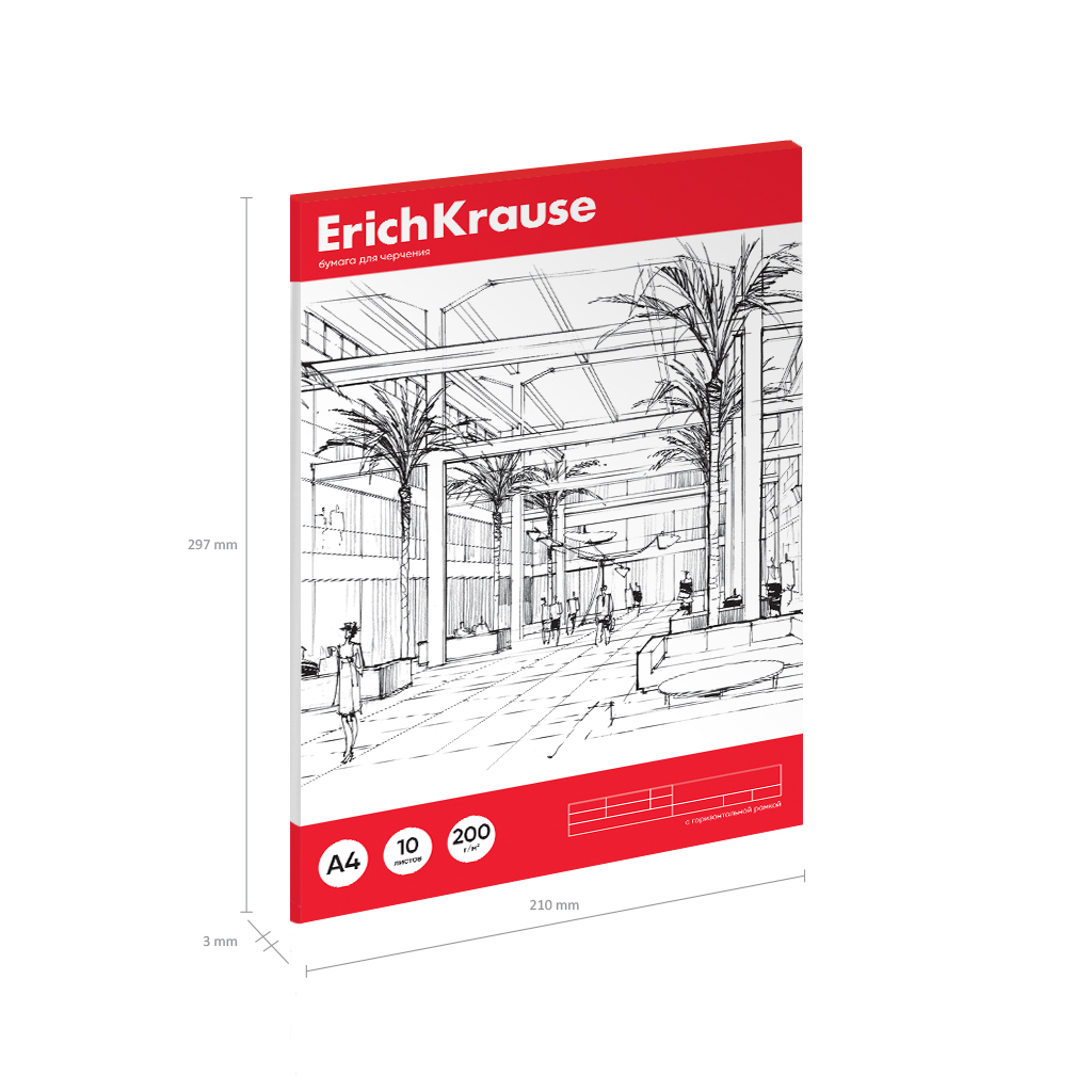 Бумага для черчения в картонной папке ErichKrause, А4, 10 листов, горизонтальная рамка |