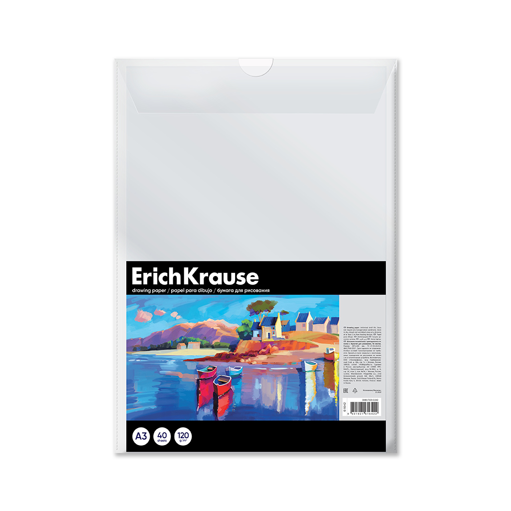 Бумага для рисования в пластиковой папке ErichKrause Art Spirit, А3, 40 листов