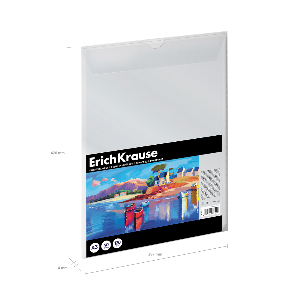 Бумага для рисования в пластиковой папке ErichKrause Art Spirit, А3, 40 листов |