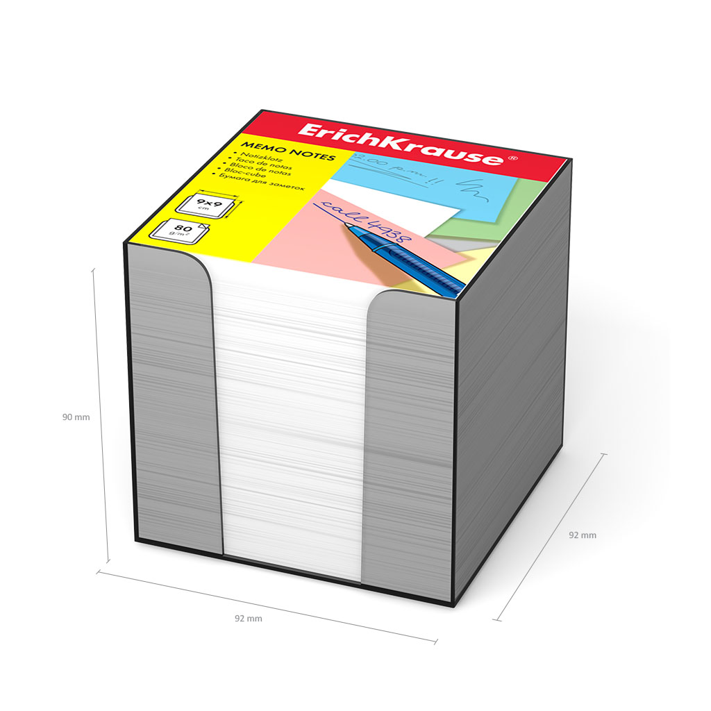 Бумага для заметок ErichKrause, 90x90x90 мм, белый, в пластиковой подставке
