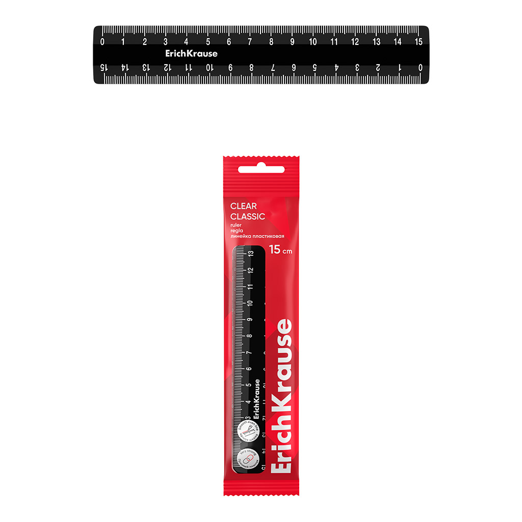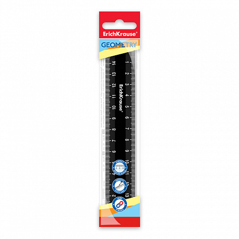 Линейка пластиковая ErichKrause Classic, 15см, флоупак, черная (в пакете по 20 шт)