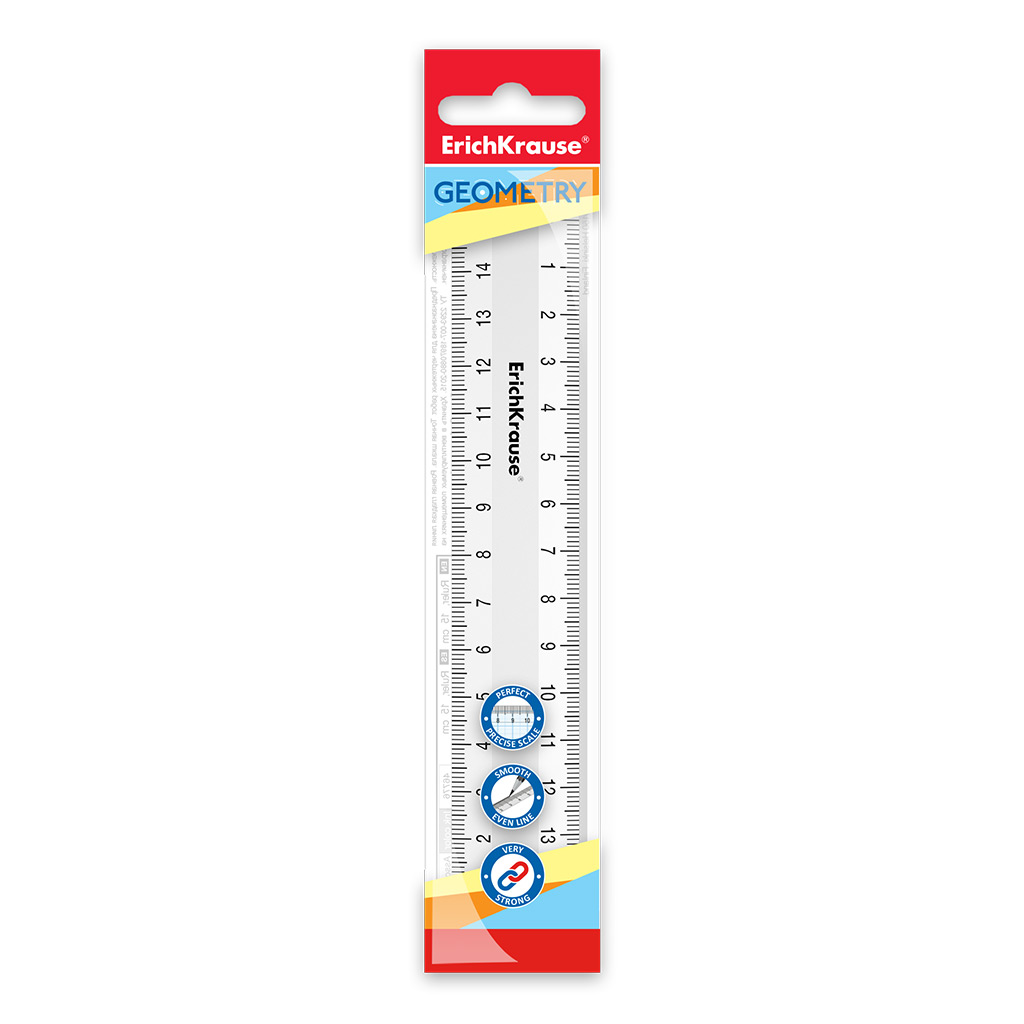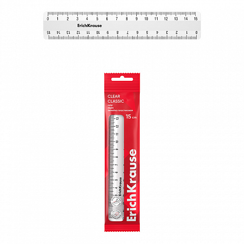 Линейка пластиковая ErichKrause Classic, 15см, флоупак, белый (в пакете по 20 шт)