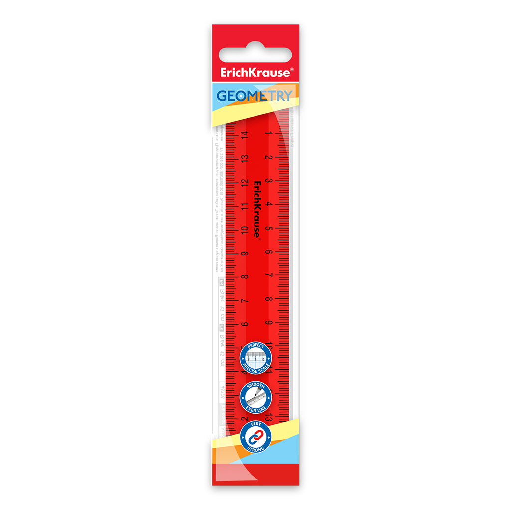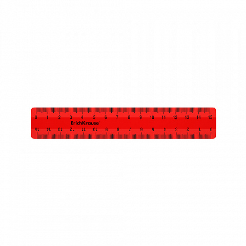 Линейка пластиковая ErichKrause Classic, 15см, флоупак, красный (в пакете по 20 шт)
