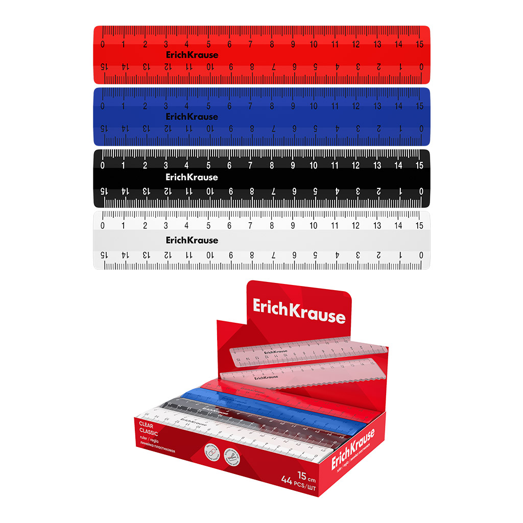 Линейка пластиковая ErichKrause Classic, 15см, ассорти (в коробке-дисплее по 44 шт) |