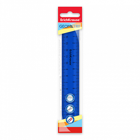 Линейка пластиковая ErichKrause Classic, 15см, флоупак, синий (в пакете по 20 шт)