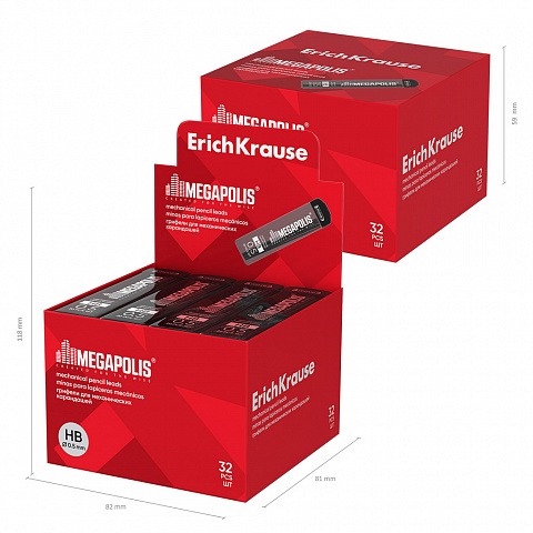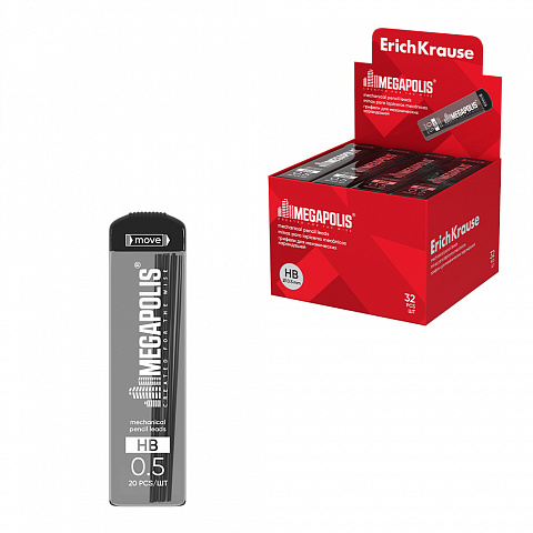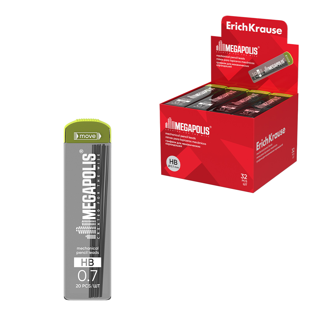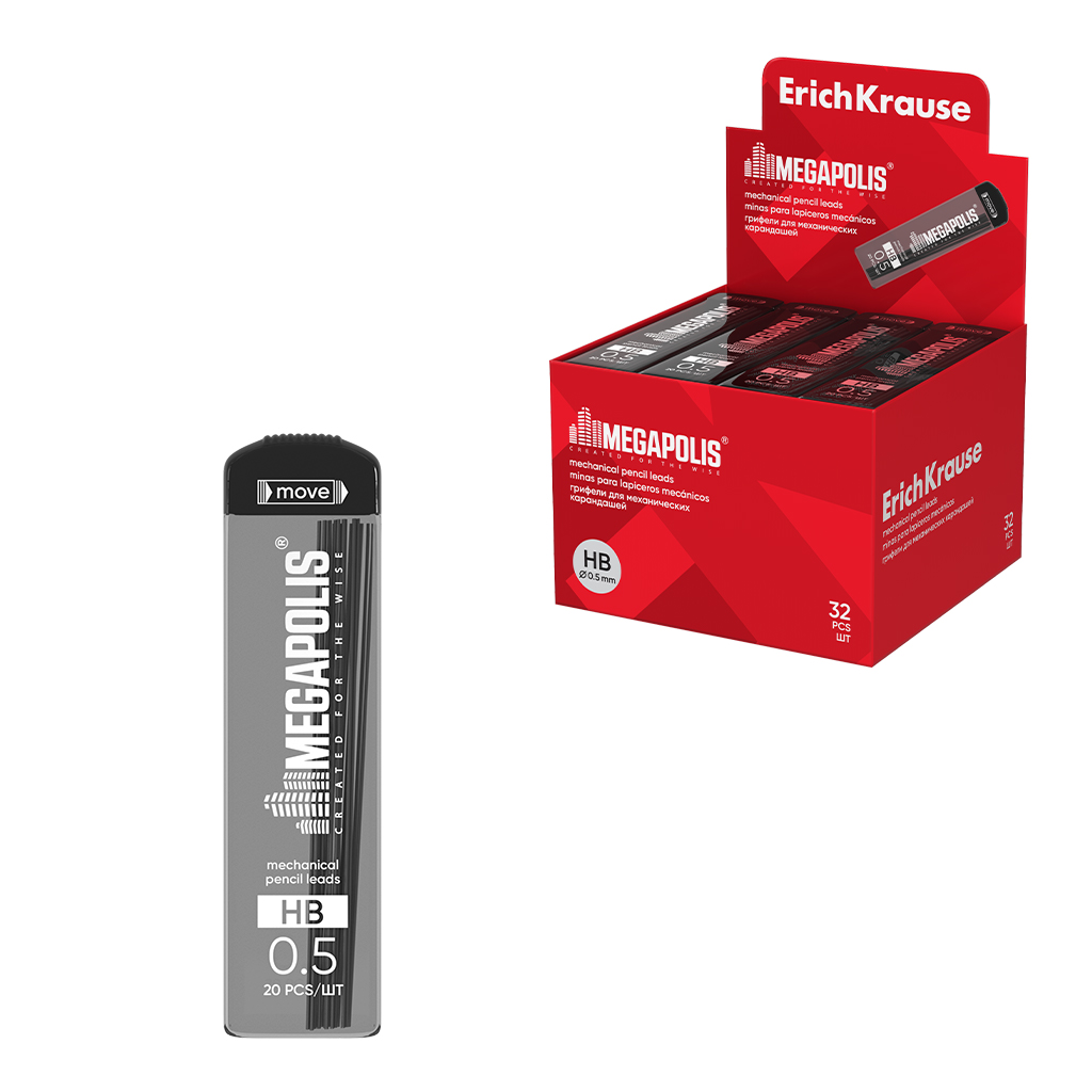 | Полное наименование товара: | Грифели ErichKrause MEGAPOLIS Concept для механических карандашей 0.5 мм, HB (в футляре по 20 шт.) |