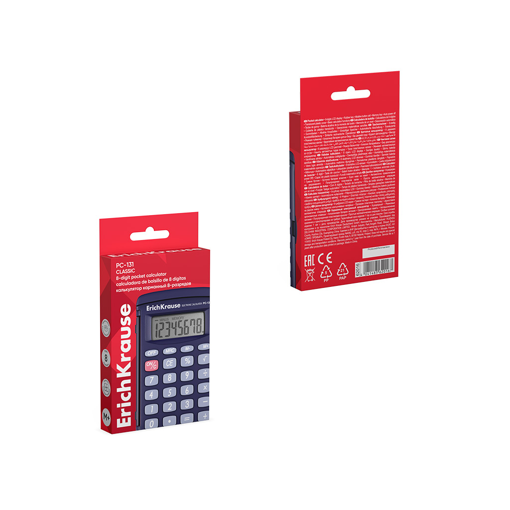 | Полное наименование товара: | Калькулятор карманный 8-разрядов ErichKrause PC-131 Classic, черный (в коробке по 1 шт.) |