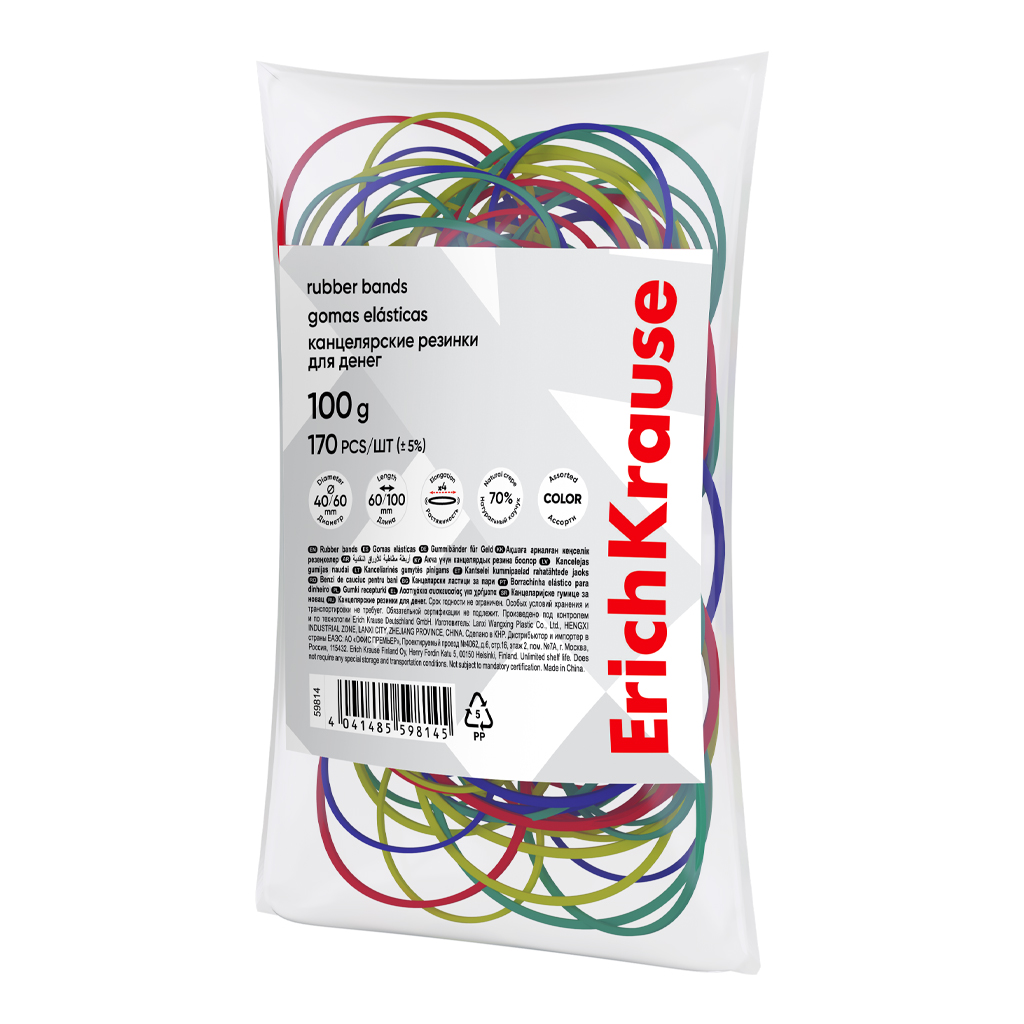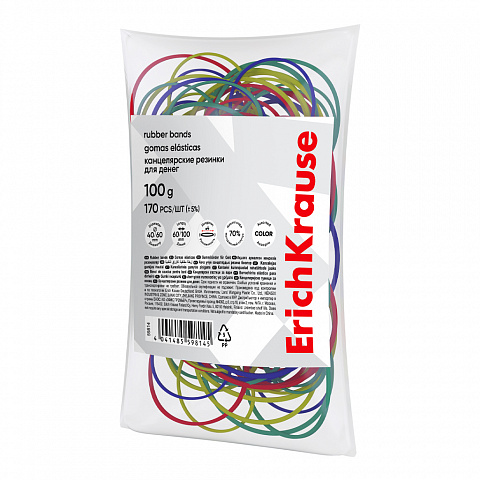Канцелярские резинки для денег ErichKrause диаметр 40 мм, 60 мм/длина 60 мм, 100 мм, ассорти (в пакете по 100г.) |
