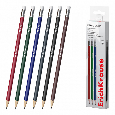 Чернографитный карандаш ErichKrause Deep Classic triangular, трехгранный, с ластиком, HB (в коробке по 12 шт.) |