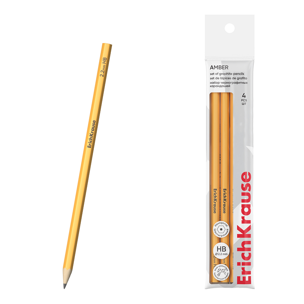 Набор из 4 чернографитных карандашей ErichKrause Amber, шестигранных, HB (в пакете) |