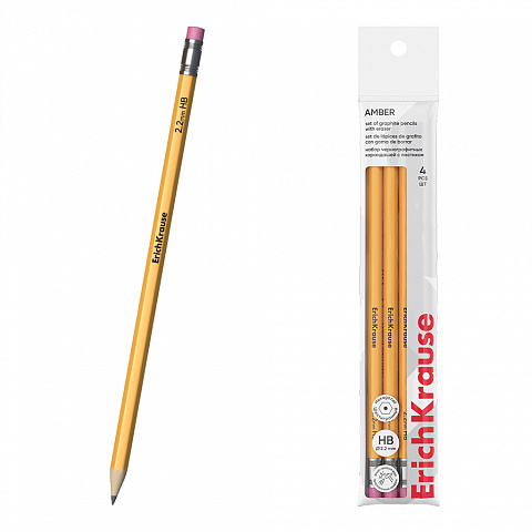 Набор из 4 чернографитных карандашей ErichKrause Amber, шестигранных, с ластиком, HB (в пакете)