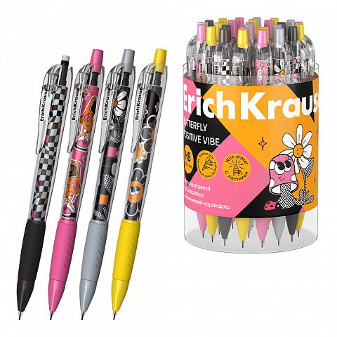 Карандаш механический ErichKrause Butterfly Positive Vibe 0.7 мм, с ластиком, НВ (в тубусе по 24 шт.) |