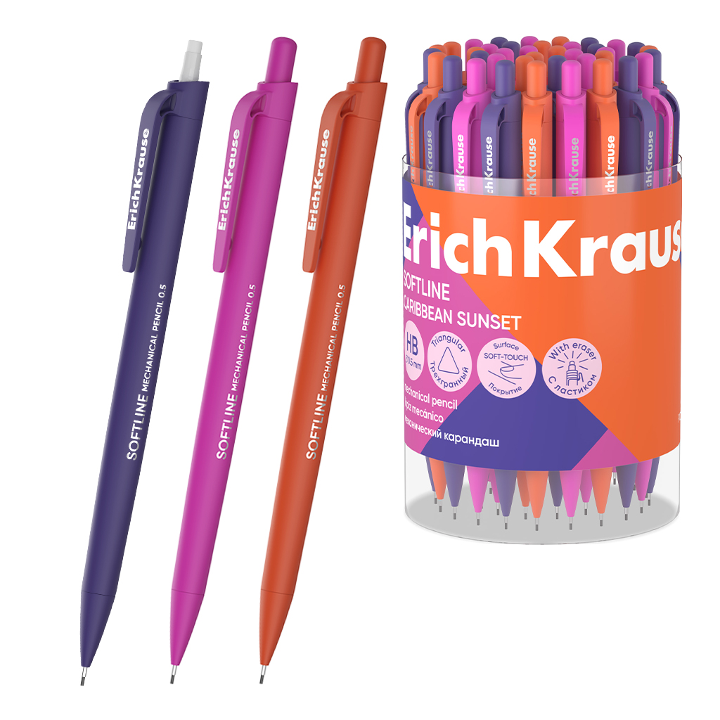 Карандаш механический ErichKrause SoftLine Caribbean Sunset 0.5 мм, НВ (в тубусе по 24 шт.) |
