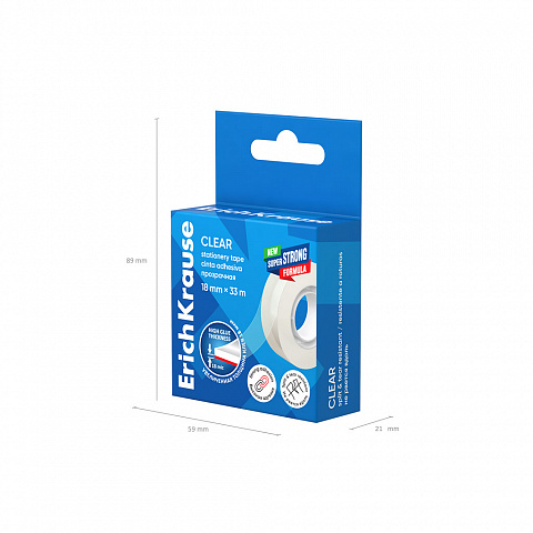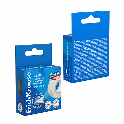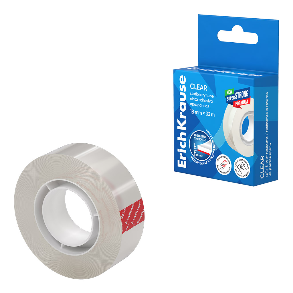 Клейкая лента ErichKrause Clear, 18ммх33м, прозрачный (в коробке по 1 шт.)
