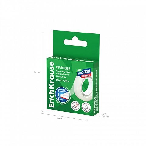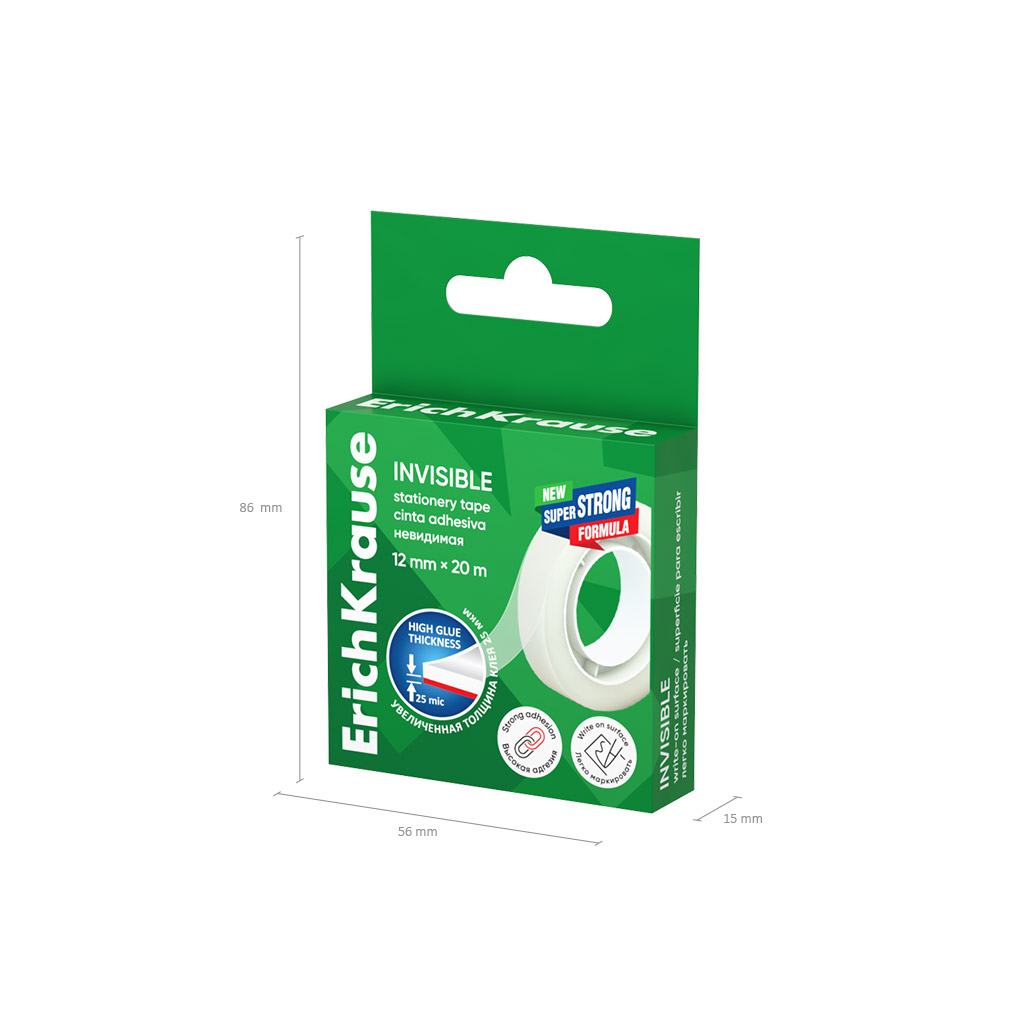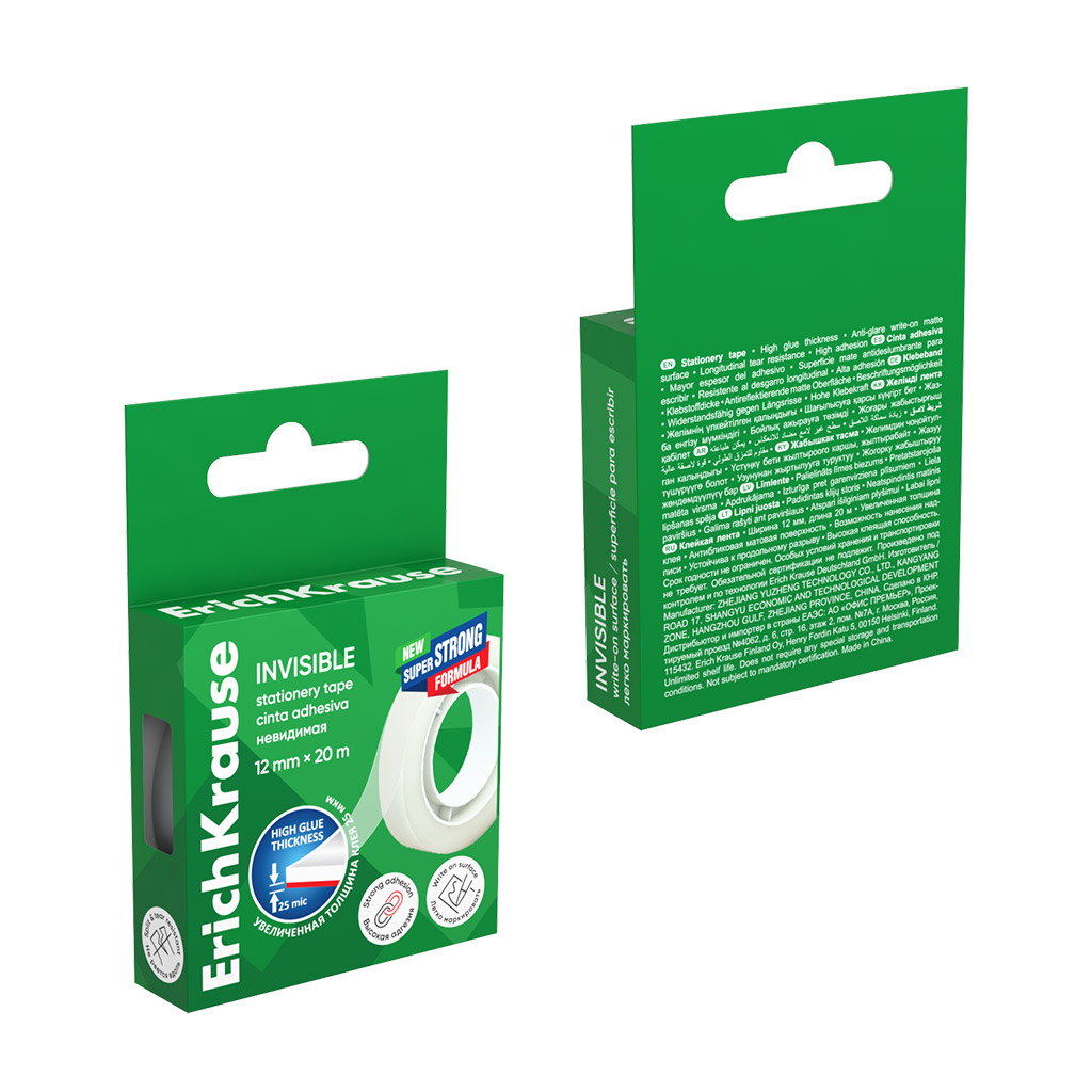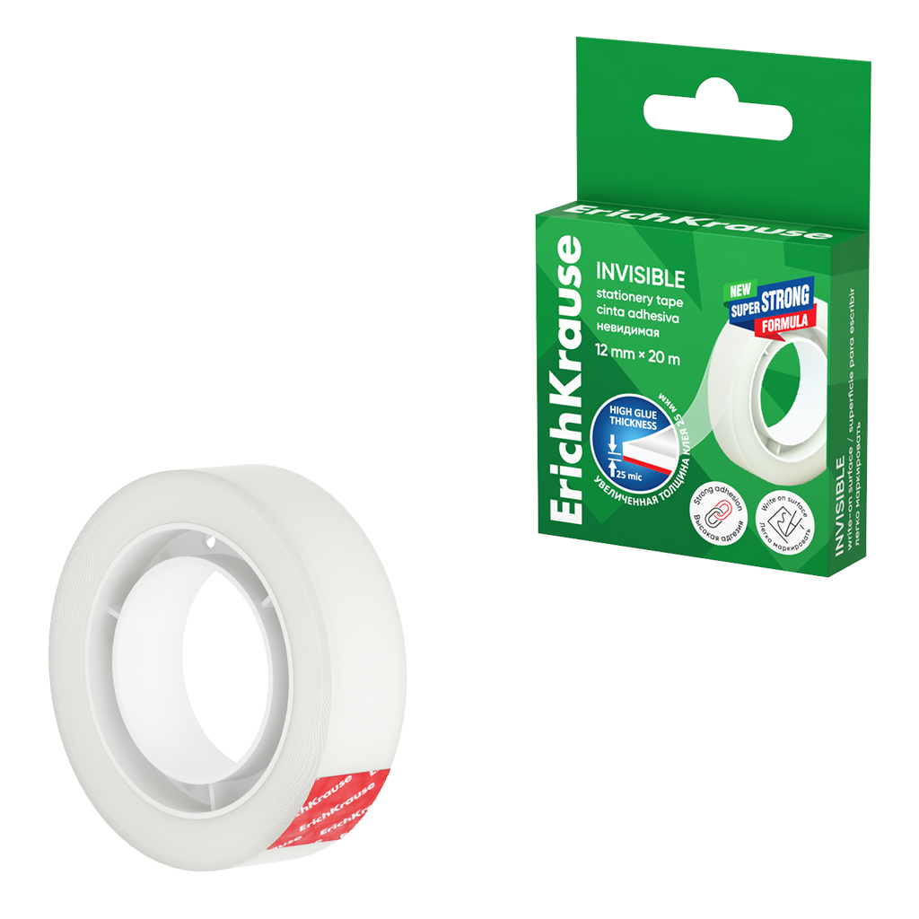 Клейкая лента ErichKrause Invisible, прозрачная с матовой поверхностью, 12ммх20м (в коробке по 1 шт.)