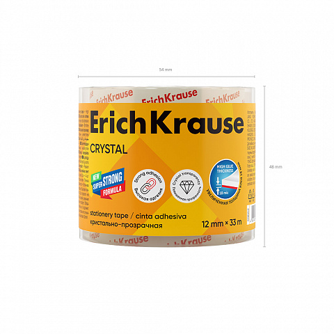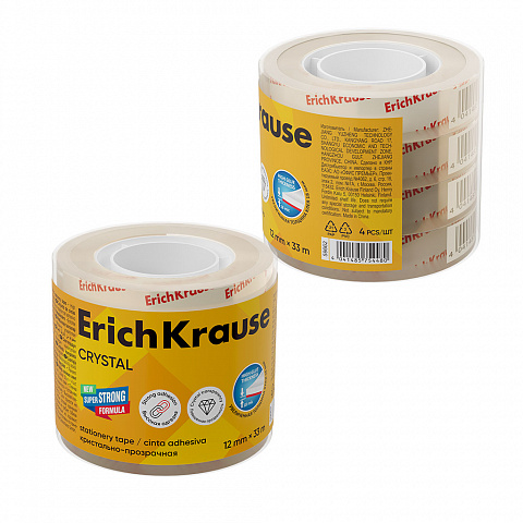 Набор из 4 клейких лент ErichKrause Crystal, повышенной прозрачности, 12ммх33м (в пленке) |