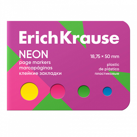 Клейкие закладки пластиковые ErichKrause Neon, 18.75x50 мм, 100 листов, 4 цвета, в картонной книжке