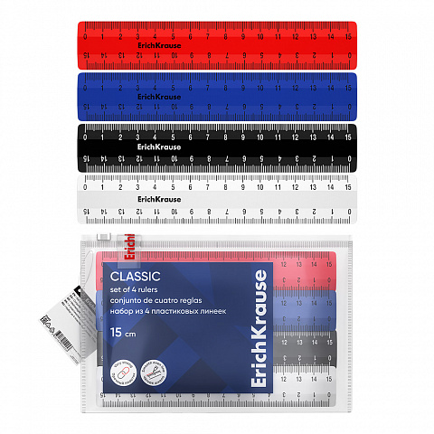 Набор из 4 пластиковых линеек ErichKrause Classic, 15см, zip-пакет, ассорти (в пакете по 20 шт) |