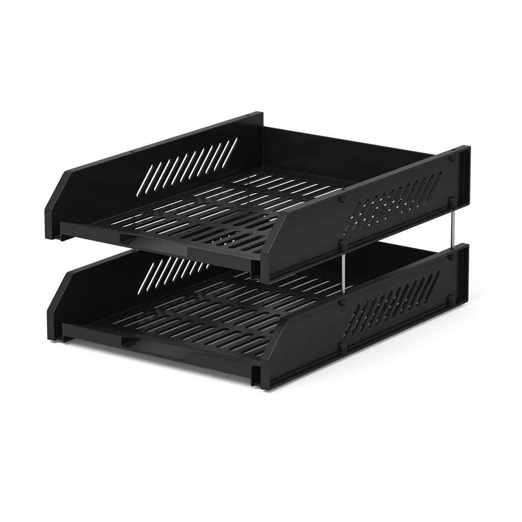 Набор из 2 пластиковых лотков для бумаг на металлических стержнях ErichKrause Classic, черный