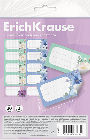 Наклейки на тетрадь ErichKrause Pastel Bloom, 3 листа, в пакете с европодвесом |