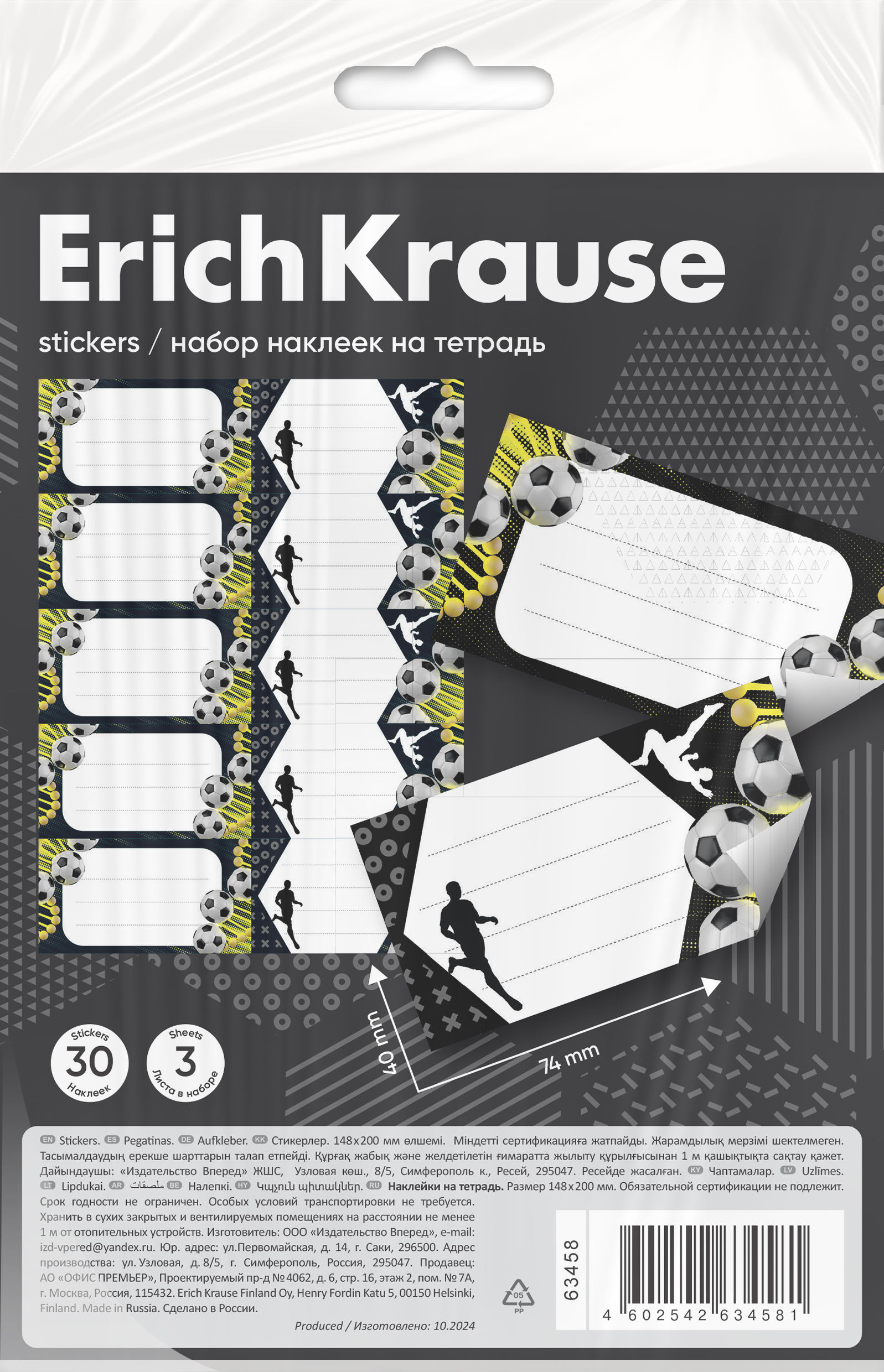 Наклейки на тетрадь ErichKrause Sport DNA, 3 листа, в пакете с европодвесом |