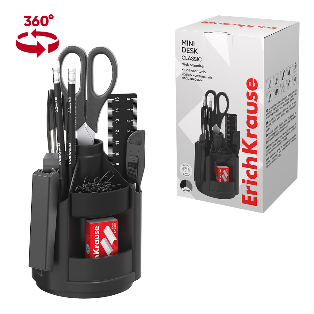 Набор настольный вращающийся пластиковый ErichKrause Mini Desk, Classic, черный |