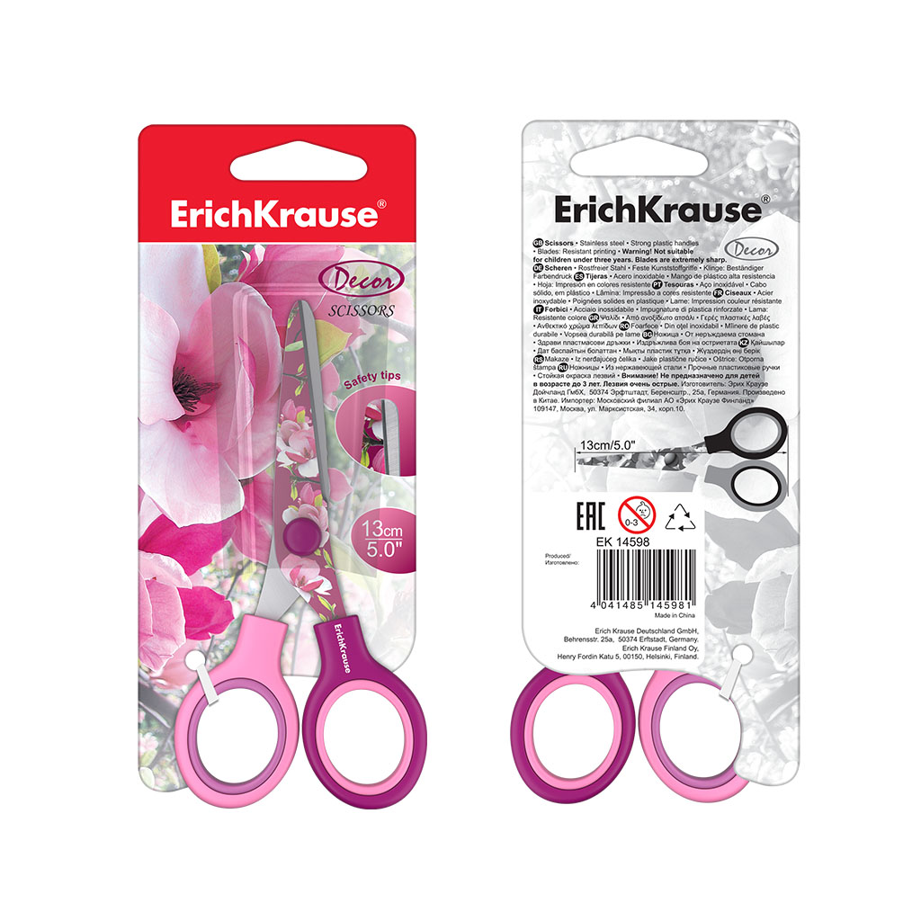 | Полное наименование товара: | Ножницы ErichKrause® Junior Decor Magnolia с принтом на лезвиях, 13см (в блистере по 1 шт.) |