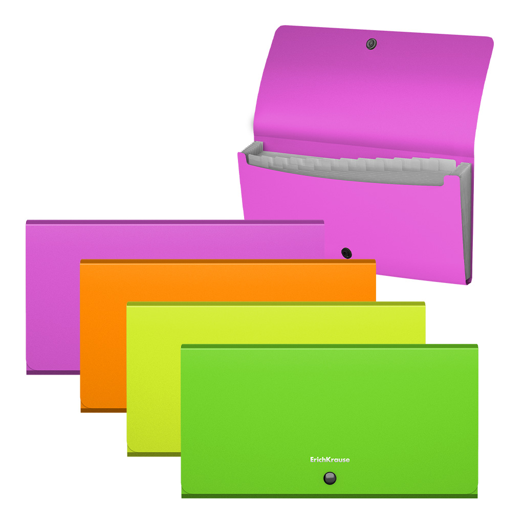 Папка-картотека пластиковая ErichKrause Matt Neon, с 13 отделениями, Check size, ассорти (в пакете по 4 шт.)
