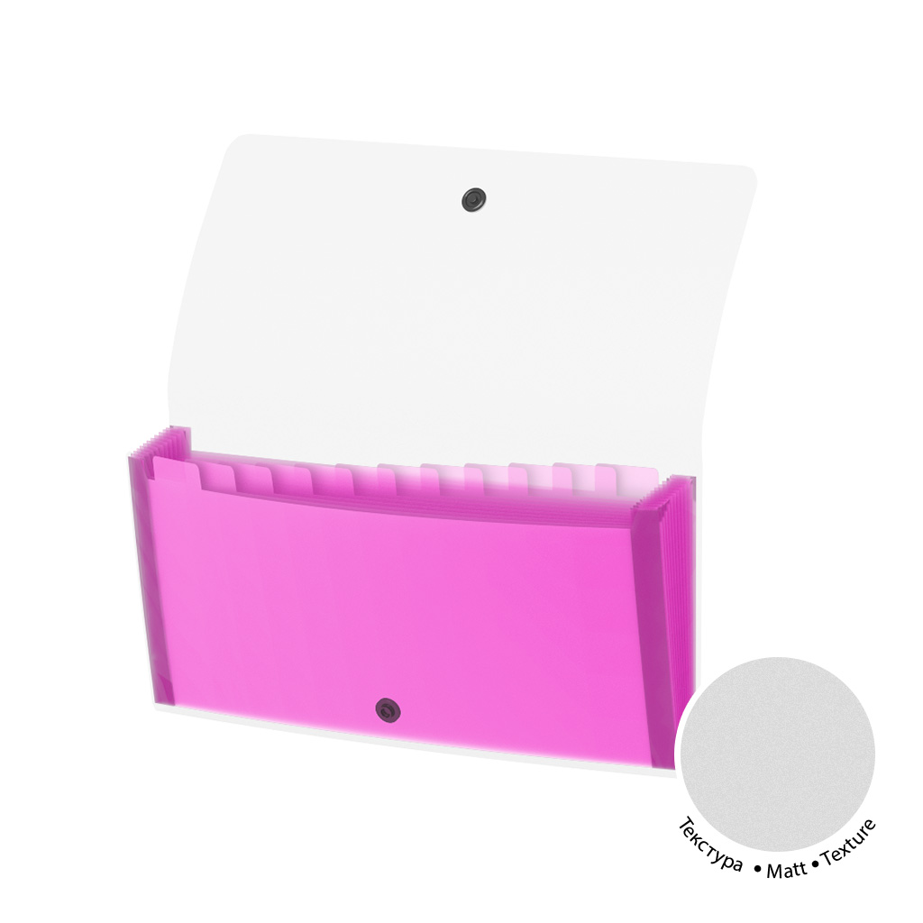 Папка-картотека с 13 отделениями формата Check из высококачественного пластика с текстурой поверхности "песок", на которой не видно отпечатков пальцев и мелких царапин. Предназначена для хранения, систематизации и транспортировки документов. Цвет папки - прозрачный, цвет отделений - ассорти: желтый, зеленый, оранжевый, розовый. Надежная застежка-кнопка обеспечивает быстрый доступ к бумагам. Размер - 260х138х25мм, толщина - 0.55мм. Код и баркод на каждой единице товара. |
