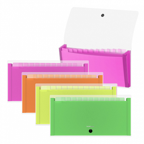 Папка-картотека пластиковая ErichKrause Matt Neon, с 13 цветными отделениями, Check size, прозрачный, ассорти (пак. по 4шт)