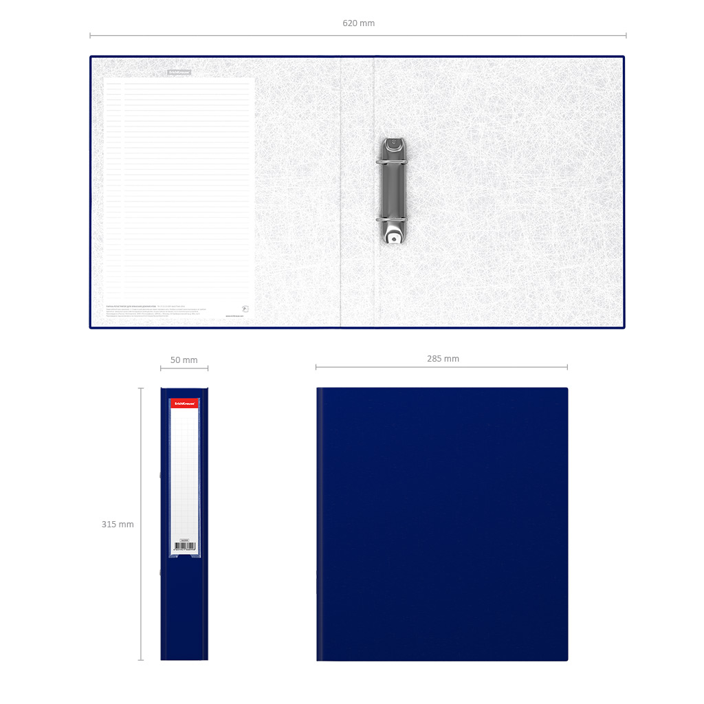 Папка-регистратор на 2 D-кольцах ErichKrause, Business, А4, 50 мм, синий |