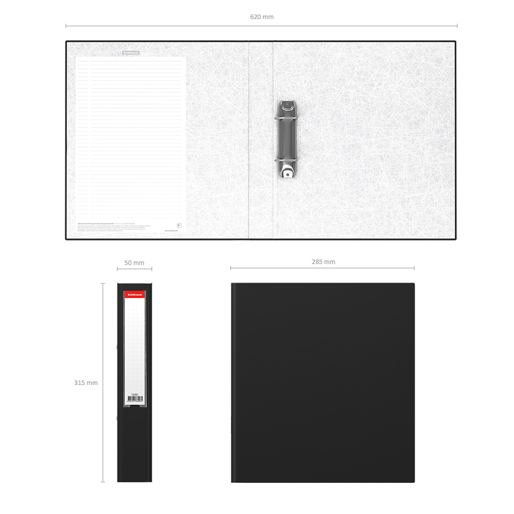 Папка-регистратор на 2 D-кольцах ErichKrause, Business, А4, 50 мм, черный