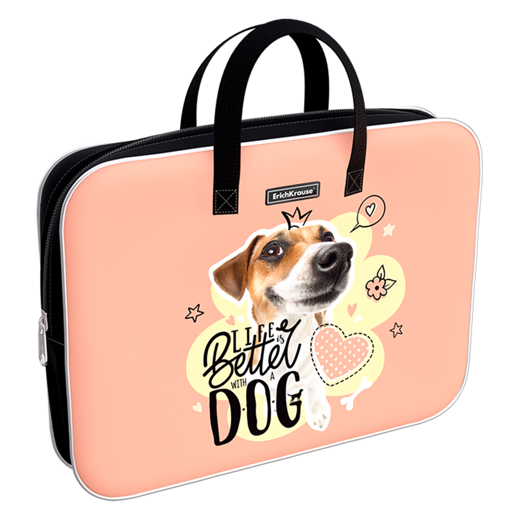 Папка текстильная на молнии ErichKrause с ручками Jack Russell, A4+