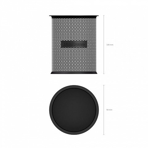 Подставка с круглой формой основания для удобного хранения настольных принадлежностей. Материал - сталь с лакокрасочным покрытием. Модель 2019-ого года поставляется с металлическим логотипом. |