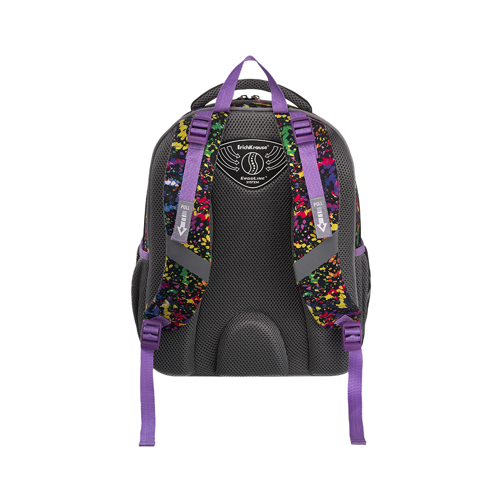 Этот рюкзак размера 39х28х14 см объёмом 15 л изготовлен из полиэстера 600D с полиуретановой пропиткой, что делает его устойчивым к износу и морозу. Внутри вместительное отделение с эластичным фиксатором для тетрадей и учебников формата А4+. Также есть мини-органайзер для мелкой канцелярии и карман на молнии. На дне – жёсткая откидная вставка. Снаружи фронтальный карман на молнии с плавным ходом, а также два боковых на резинке, куда можно положить бутылку с водой или зонтик. Рюкзак весит всего 520 г, что делает его одним из самых лёгких в своей категории. У модели эргономичная спинка ErgoLine® System. Такая конструкция из мягких подушечек равномерно распределяет вес рюкзака и снижает нагрузку на позвоночник. Ткань спинки AirMesh “дышит”, а воздушные каналы между подушечками спинки препятствуют образованию влаги. Мягкие S-образные лямки не давят на плечи ребёнка. Светоотражающие элементы по всему периметру повышают безопасность в темноте. Модель также оснащена объёмной и удобной ручкой для переноски в руке. Крепления ручки и лямок усилены дополнительными швами из лавсановых нитей. Пластиковые ножки защищают от загрязнений и влаги. Рюкзак ErichKrause ErgoLine® – оптимальный выбор для занятий в школе. |