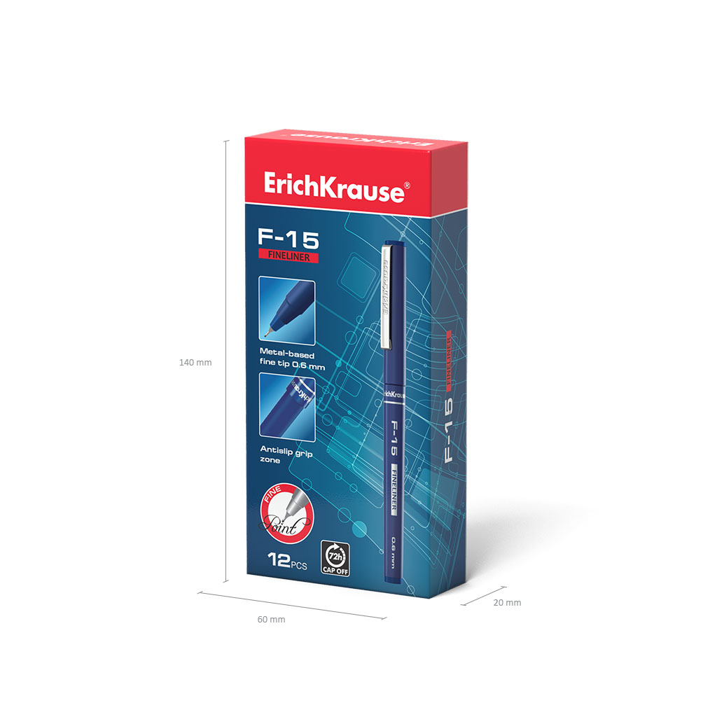 | Полное наименование товара: | Ручка капиллярная ErichKrause F-15 Stick Classic, цвет чернил синий (в коробке по 12 шт.) |