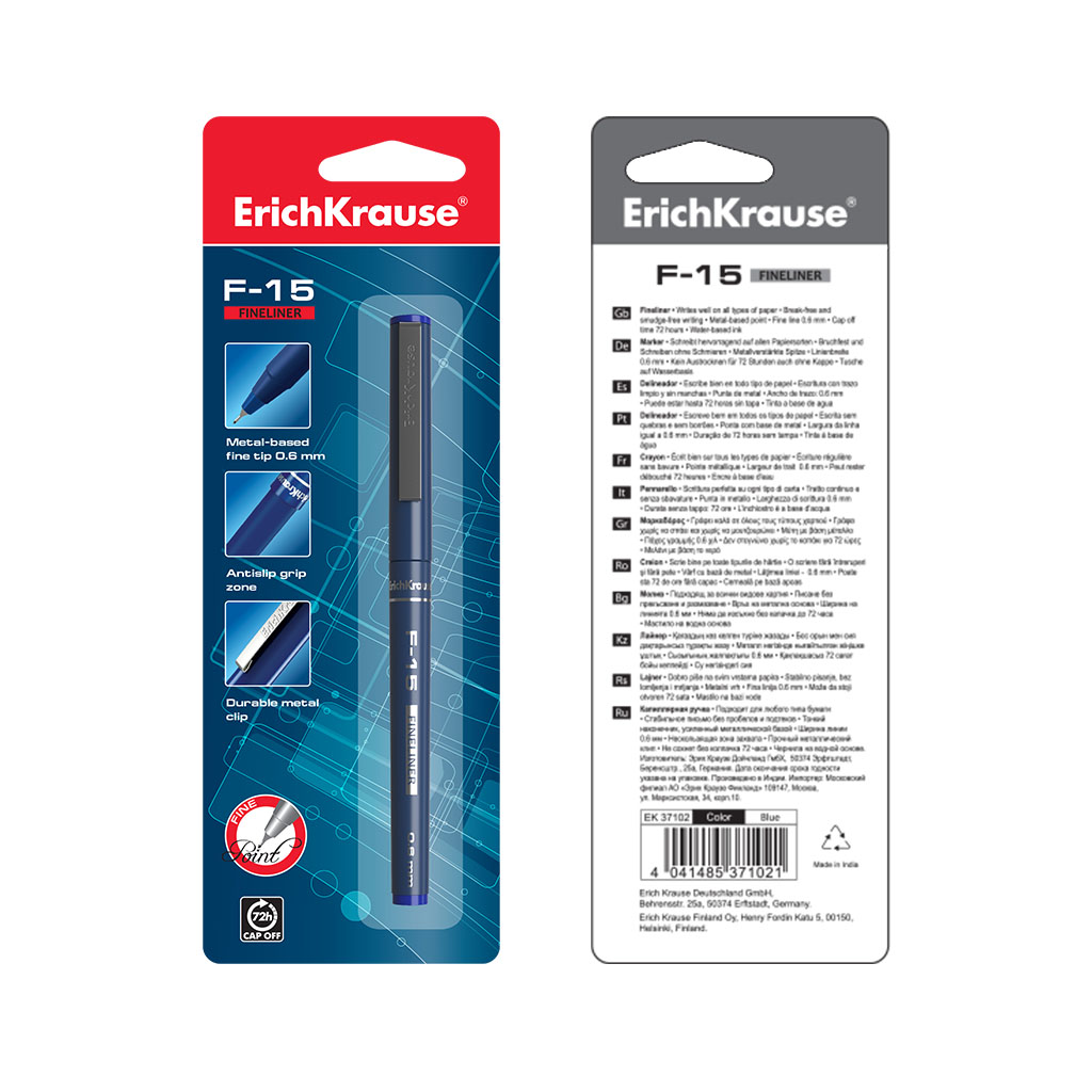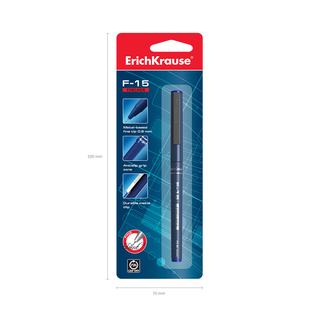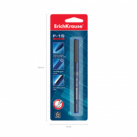 | Полное наименование товара: | Ручка капиллярная ErichKrause F-15 Stick Classic, цвет чернил синий (в блистере по 1 шт.) |