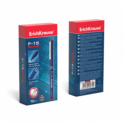 | Полное наименование товара: | Ручка капиллярная ErichKrause F-15 Stick Classic, цвет чернил красный (в коробке по 12 шт.) |