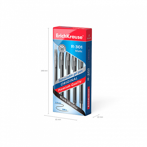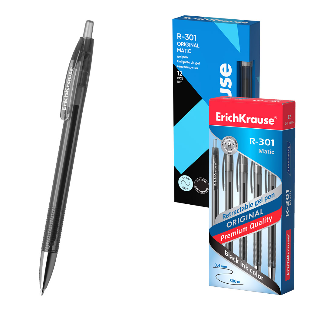 Ручка гелевая автоматическая ErichKrause R-301 Original Gel Matic 0.5, цвет чернил черный (в коробке по 12 шт.) |