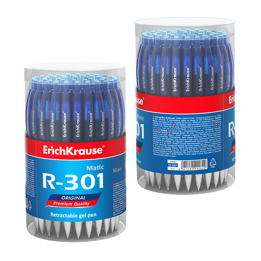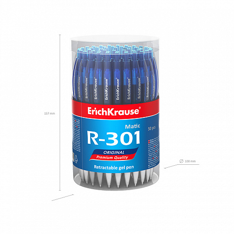 Ручка гелевая автоматическая ErichKrause R-301 Original Gel Matic 0.5, цвет чернил синий (в тубусе по 50 шт.) |