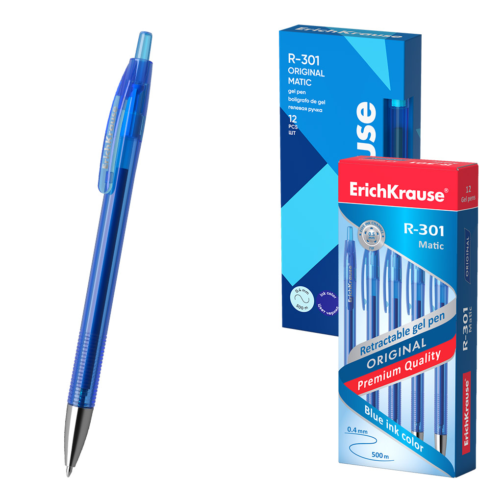 Ручка гелевая автоматическая ErichKrause R-301 Original Gel Matic 0.5, цвет чернил синий (в коробке по 12 шт.) |
