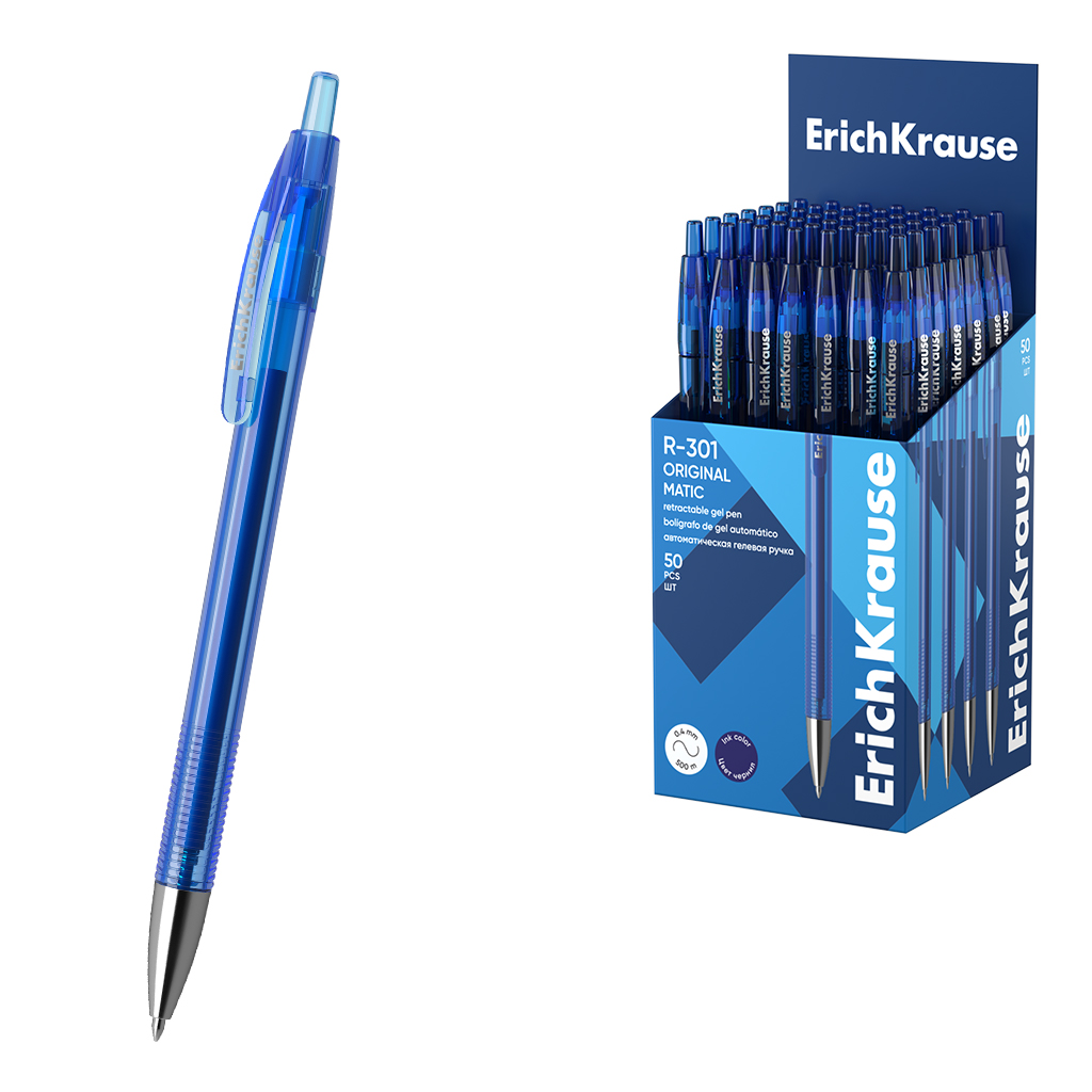 Ручка гелевая автоматическая ErichKrause R-301 Original Gel Matic 0.5, цвет чернил синий (в коробке по 50 шт.) |