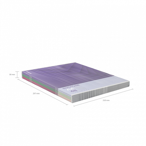 Тетрадь общая ученическая формата А4 (210х297 мм). Обложка из высококачественного мелованного картона плотностью 190 г/м2. В блоке 48 листов в клетку с полями. Бумага офсетная плотностью 60 г/м2. Цвет линовки - синий. Скругленные уголки обложки и блока. Тип скрепления - скоба. Тетради разных цветов упакованы в термоусадочную пленку. |