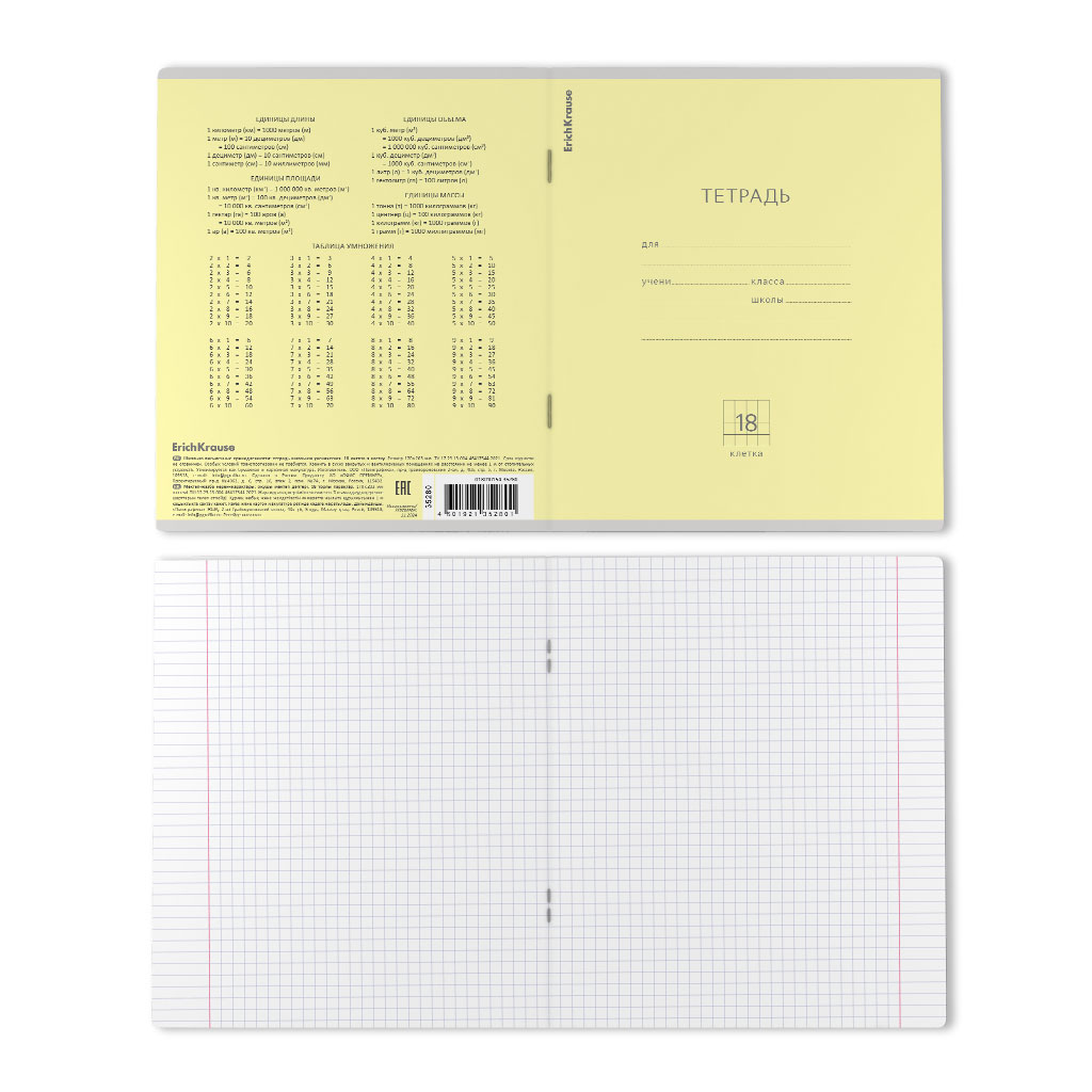 Тетрадь школьная ученическая ErichKrause Классика желтая, 18 листов, клетка (в плёнке по 10 шт.) |